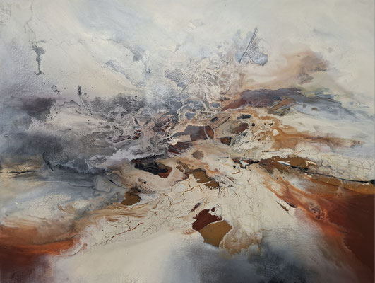 Die vorgezeigten Techniken sind vielfältig: mit Hilfe von Struktur- und Collagetechniken erschaffen wir dreidimensionale Oberflächen. Darübergelegte Farbschichten – lasierend oder pastos – schaffen Tiefe und Raum.